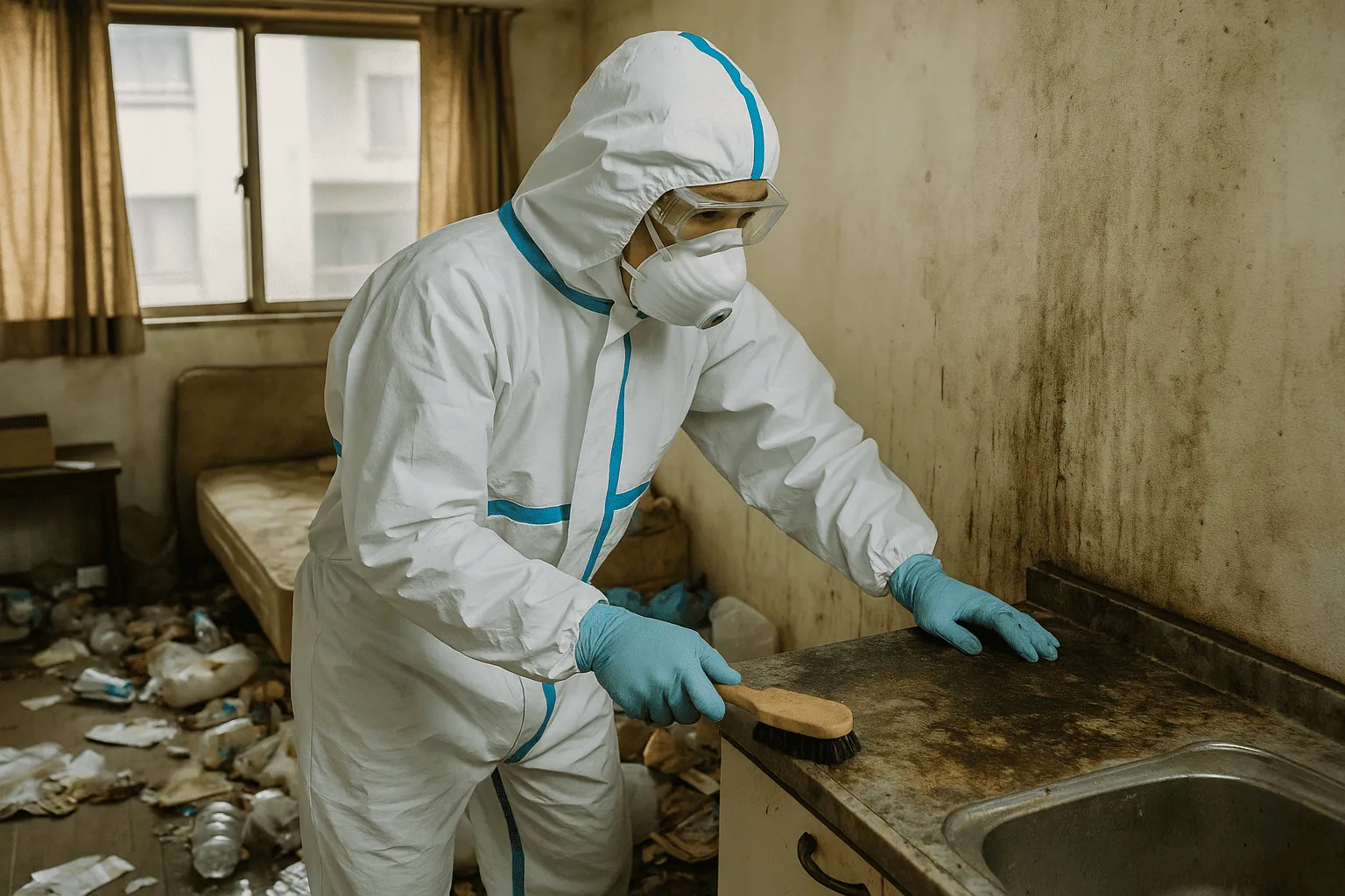 孤独死の現場では、腐敗によって床や壁が汚染されるだけでなく、空間全体に悪臭と細菌が広がっているため、通常の清掃では不十分です。そこで必要となるのが「特殊清掃」と呼ばれる専門的な原状回復作業です。まず、遺体痕や体液が染み込んだ部分の建材を取り除く、または交換する作業が行われます。これは表面的な拭き取りでは対応できず、建材の削り取りや撤去が必要です。次に、空間全体に専用の消毒薬剤を噴霧し、ウイルスや細菌を徹底的に除菌します。さらに、オゾン脱臭機や薬剤による脱臭処理で腐敗臭を取り除きます。この段階で害虫が発生している場合は、殺虫剤や燻蒸による駆除も実施。施工後にはATP検査と呼ばれる衛生チェックを行い、数値的に清浄度を確認します。必要に応じて除菌証明書が発行されるため、再販や再賃貸にも安心です。最後に、腐敗により損傷を受けた床材・壁紙・建具などを新しくリフォームし、原状回復を完了させます。孤独死の現場ではリビングだけでなく、玄関・廊下・隣室にまで影響が及ぶケースも多いため、迅速かつ包括的な対応が求められます。