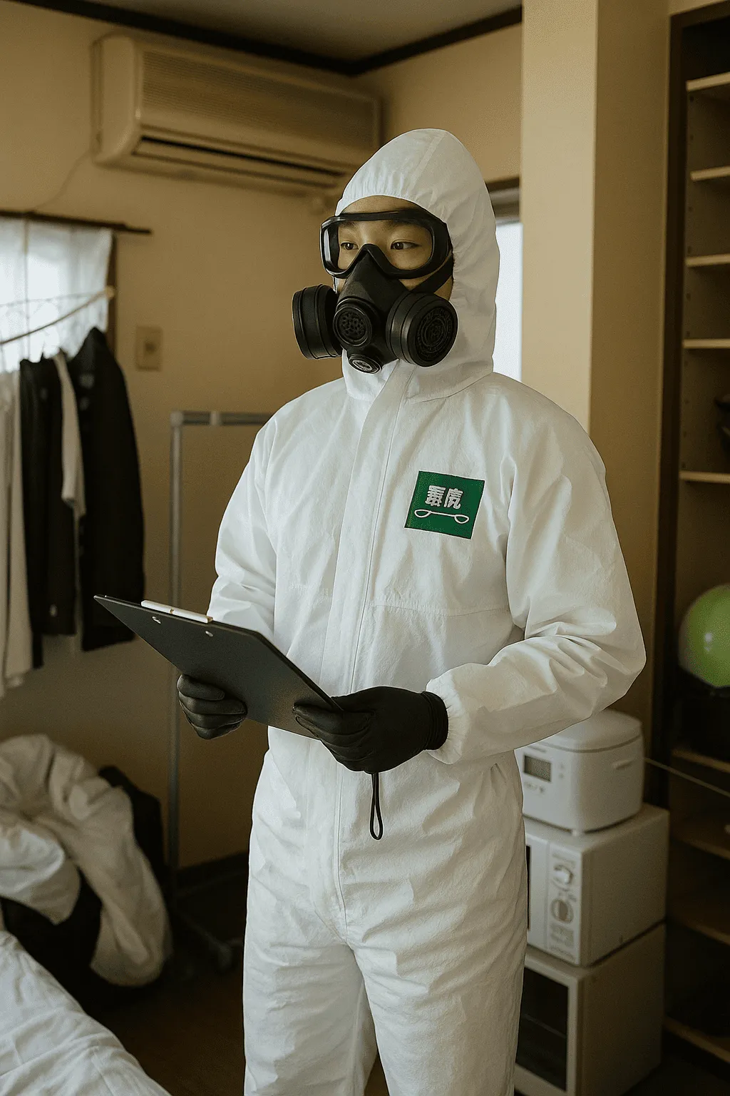 特殊清掃が必要な現場では、想像以上に深刻な衛生リスクや心理的ショックが伴います。死後数日~数週間が経過した部屋には、目に見えないウイルスや細菌、腐敗臭に誘引された害虫(ウジ・ハエ・ゴキブリなど)が繁殖しており、一般の方が防護具なしで立ち入ることは非常に危険です。また、床材の下や壁の内部にまで体液や臭気が浸透しているケースも多く、通常の清掃用具では対処できません。中途半端な対応をすると、臭いが再発する原因にもなります。さらに、亡くなった現場をご遺族が直接見ることによる精神的ショックやトラウマの危険も無視できません。特殊清掃専門店フルサポート関東では、経験豊富なスタッフが適切な防護装備と専門知識のもと、安全かつ迅速に対応いたしますので、決して無理をなさらず、まずは専門業者へご相談ください。