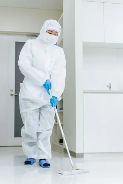 遺体の体液・血液・汚染物には、B型・C型肝炎ウイルス、HIV、腸管系ウイルス、細菌、カビ、寄生虫など、さまざまな感染源が含まれている可能性があります。特に死後日数が経過している場合、体液が床や壁に浸透し、空気中にも有害微粒子が舞っていることがあります。これらに適切な防護なしで触れることは、重篤な感染症の発症リスクを高める行為です。使い捨ての手袋やマスクだけでは不十分であり、専門の知識を持った業者による感染対策が必要です。