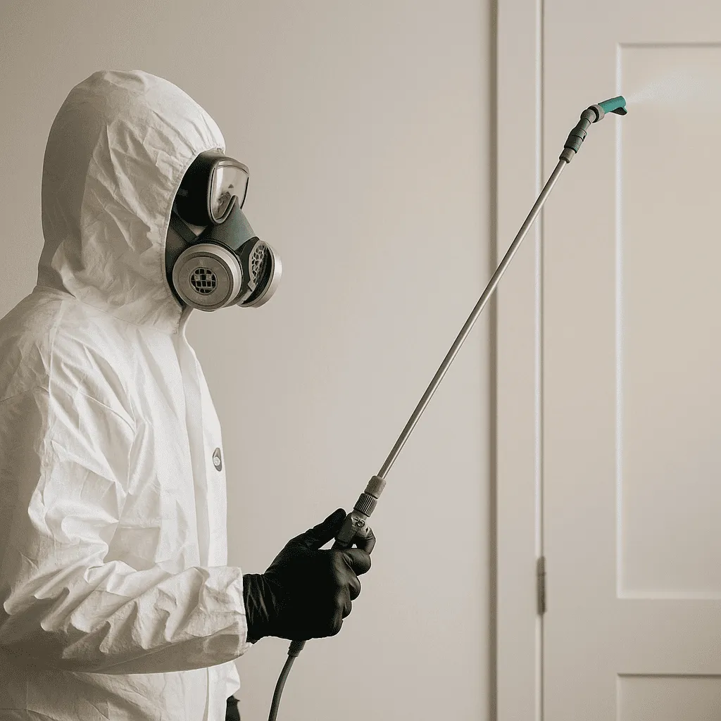 特殊清掃において最も重要な作業のひとつが「腐敗臭(死臭)」の除去です。このため、プロの現場ではオゾン脱臭機が活躍します。オゾンは空気中に浮遊する臭気分子やウイルス・細菌を酸化分解し、無害化する特性があり、空間全体に効果を発揮します。また、ULV(ウルトラローボリューム)噴霧機と呼ばれる薬剤散布機を使って、細かいミスト状の除菌剤を壁や天井、家具などの表面に均一に噴霧することで、臭気の元となる菌や汚染物を無力化します。使用される薬剤には、次亜塩素酸ナトリウムやアルコール系の除菌剤が一般的で、これらは病原菌対策としても非常に有効です。